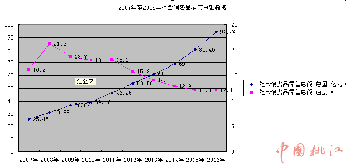2007年至2016年社会消费品零售总额数据